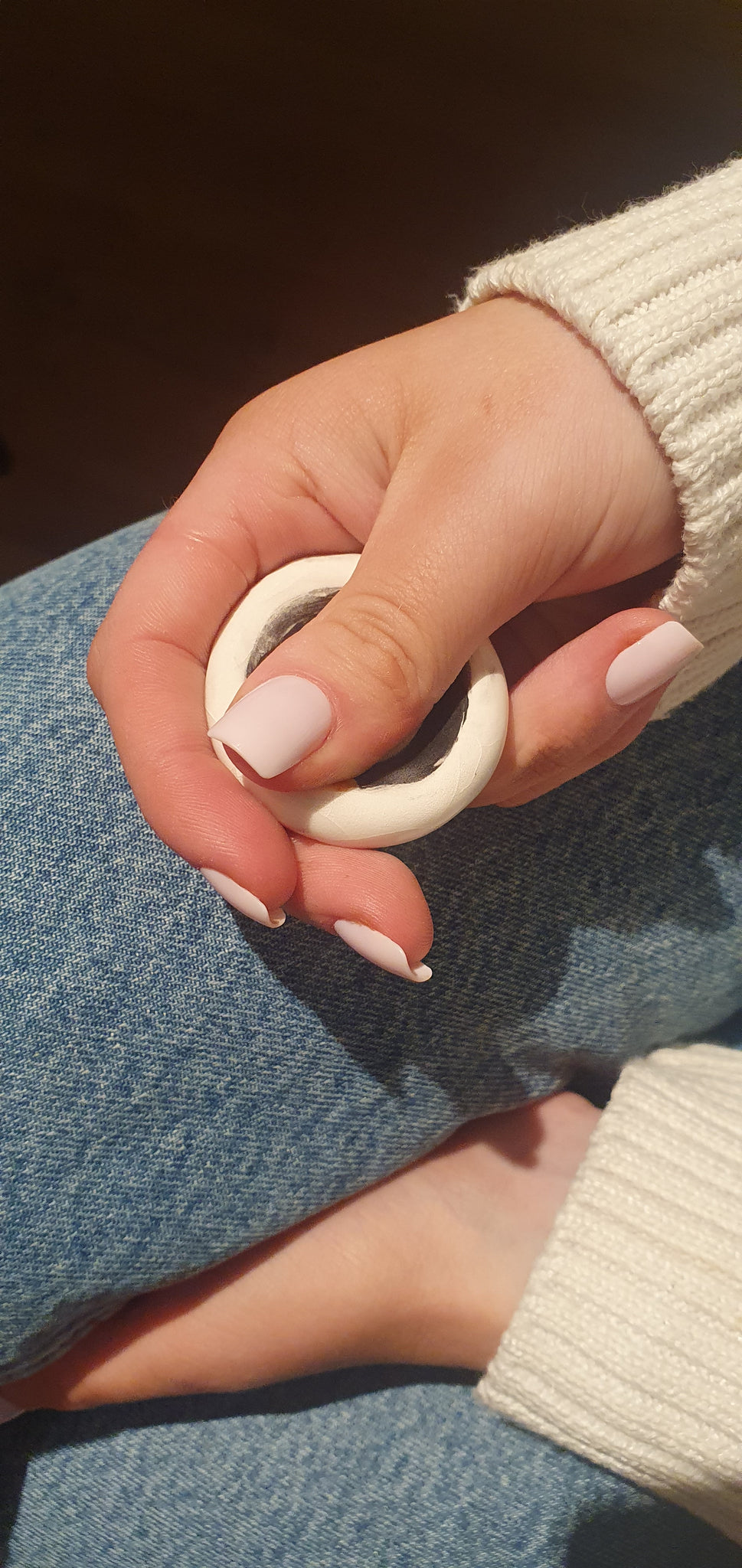 These little ceramic stones fit neatly in your palm or your pocket. I first designed them years ago, inspired by my own habit of carrying a pebble wherever I went, I made one for my children to keep in their pencil case, to hold and fidget with if they felt nervous or anxious. Because they clay surface is low-fired, they remain porous so that they can hold a drop of essential oil to further enhance your grounding experience. The contrast between the raw clay and the glazed surface makes the MindFull stone perfect for fidgeting, soothing anxiety, easing stress, or simply keeping your focus during a busy day.